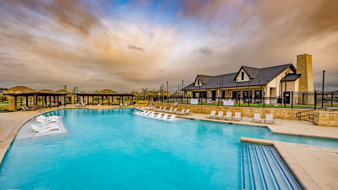 A striking 30-foot-tall tower, complete with a cascading water feature, serves as a captivating gateway to this picturesque community. It introduces a cutting-edge amenity center featuring a resort-style pool with a lazy river and a shaded kiddie pool, surrounded by open spaces designed to cater to both active and leisurely pursuits for residents.